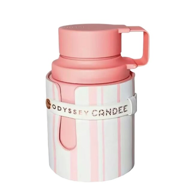 Odyssey Candee by Armaf is a fragrance for women. This is a new fragrance. Odyssey Candee was launched in 2024. Top notes are Strawberry, Raspberry, Geranium, Peach and Bergamot; middle notes are Caramel, Jasmine and Passionfruit; base notes are Patchouli, Musk and Amber.