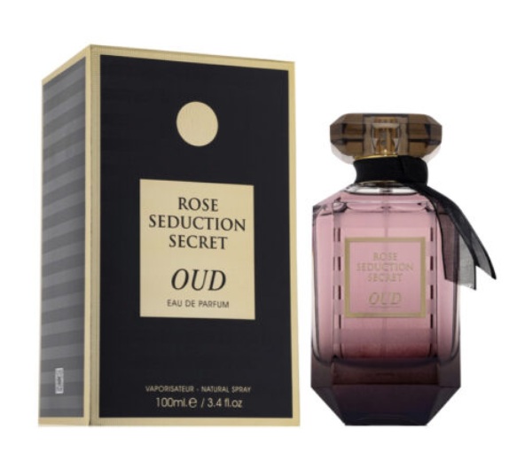 Rose Seduction Secret Oud on Arabiasta inspiroitunut Fragrance Worldin hajuvesi, joka on valmistettu Yhdistyneissä arabiemiirikunnissa ja tarjoaa aistillisen ja kiehtovan tuoksuelämyksen. Tuoksu avautuu eloisalla, mausteisella sahramilla, jota täydentävät raikas mandariini ja orvokinlehti, luoden elegantin ja hienostuneen ensivaikutelman. Sydämessä yhdistyvät valkoinen mokkanahka ja pioni, tuoden kokonaisuuteen ylellisen kukkaisen vivahteen. Tuoksua ympäröi rikkaan moniulotteinen oudin tunnusomainen sävy – arvokas ja mystinen puu, joka viipyy iholla savuisena, voimakkaana mutta samalla hienostuneena – ja jota pohjanuoteissa täydentää moderni ambroksaani. Hajuvesi on saanut inspiraationsa Victoria’s Secretin Bombshell Oud -tuoksusta ja se on suunniteltu tasapainottamaan raikkaus ja lämpö, luoden vastustamattoman ja viettelevän auran.