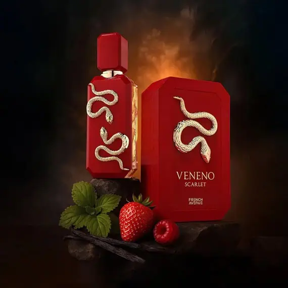 Veneno Scarlet by French Avenue is a fragrance for women and men. This is a new fragrance. Veneno Scarlet was launched in 2025. Top notes are Strawberry, Blackberry and Caramel; middle notes are Raspberry, Cedar and Cinnamon; base notes are Leather, Caramel, Vanilla, Patchouli, Fir and Tonka Bean.
